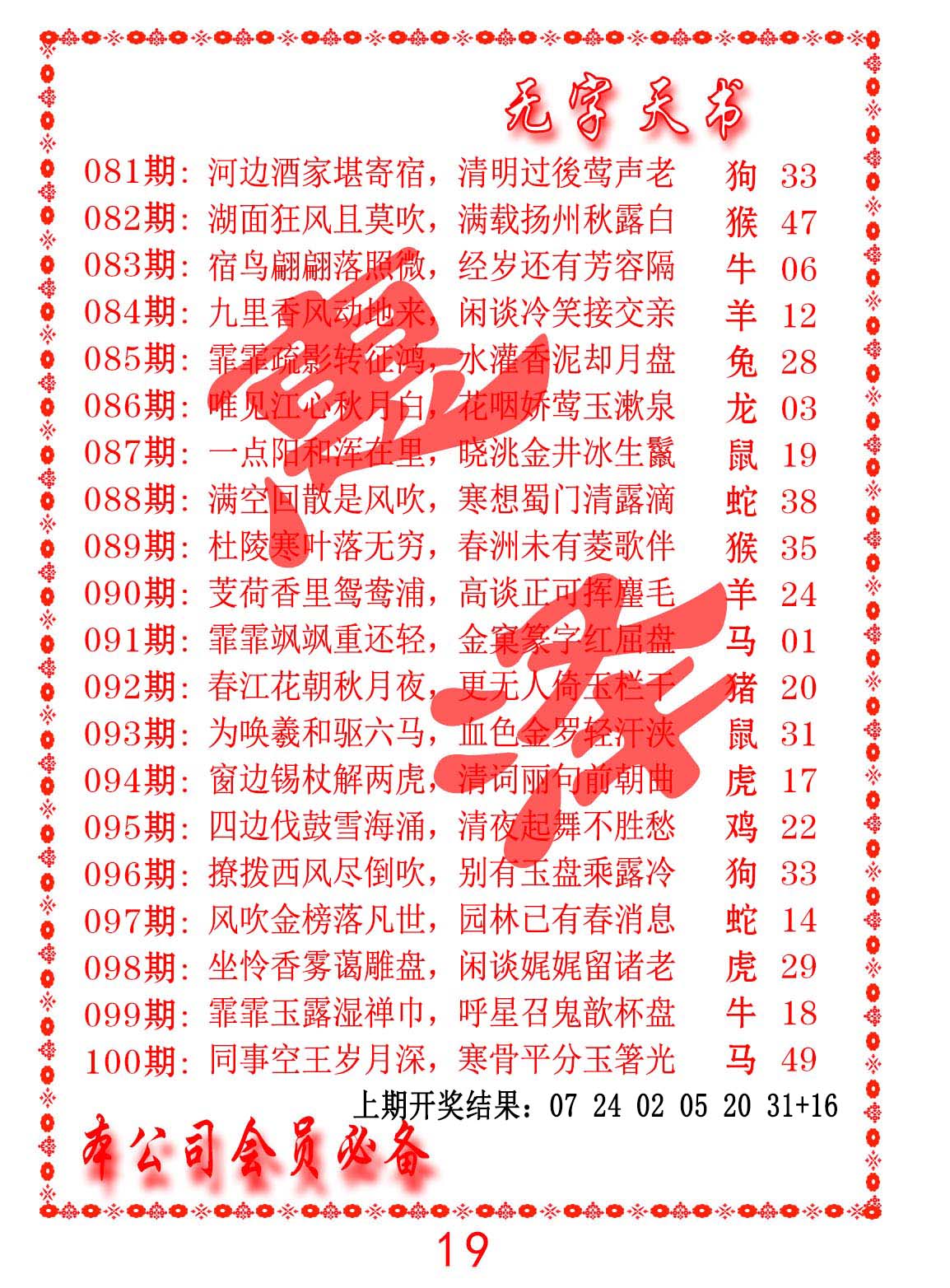 085期: 澳门六合彩 『秘典玄机图』已更新